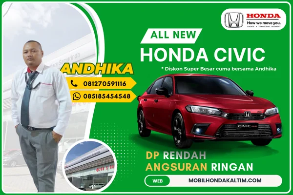Perkenalkan, saya Andhika, Sales Consultant Honda di Dealer Honda Samarinda, berlokasi di Jl. M. Yamin No. 80, Gunung Kelua, Samarinda Ulu – Kalimantan Timur. Saya siap membantu Anda memilih mobil Honda terbaik dengan pelayanan cepat, ramah, dan profesional.